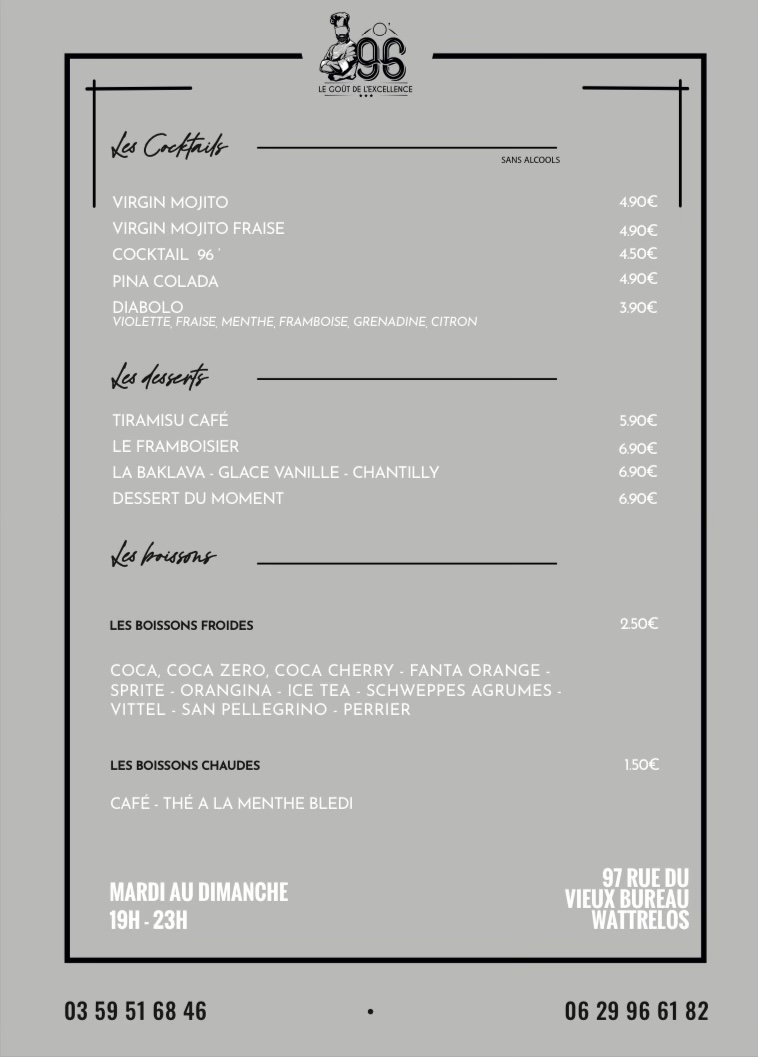 Located in the heart of Wattrelos, O'96 Restaurant is a culinary gem that promises an exceptional dining experience. Renowned for its vibrant and creative dishes, the menu highlights the use of fresh, high-quality ingredients that come together to create meals that are both exquisite and satisfying.